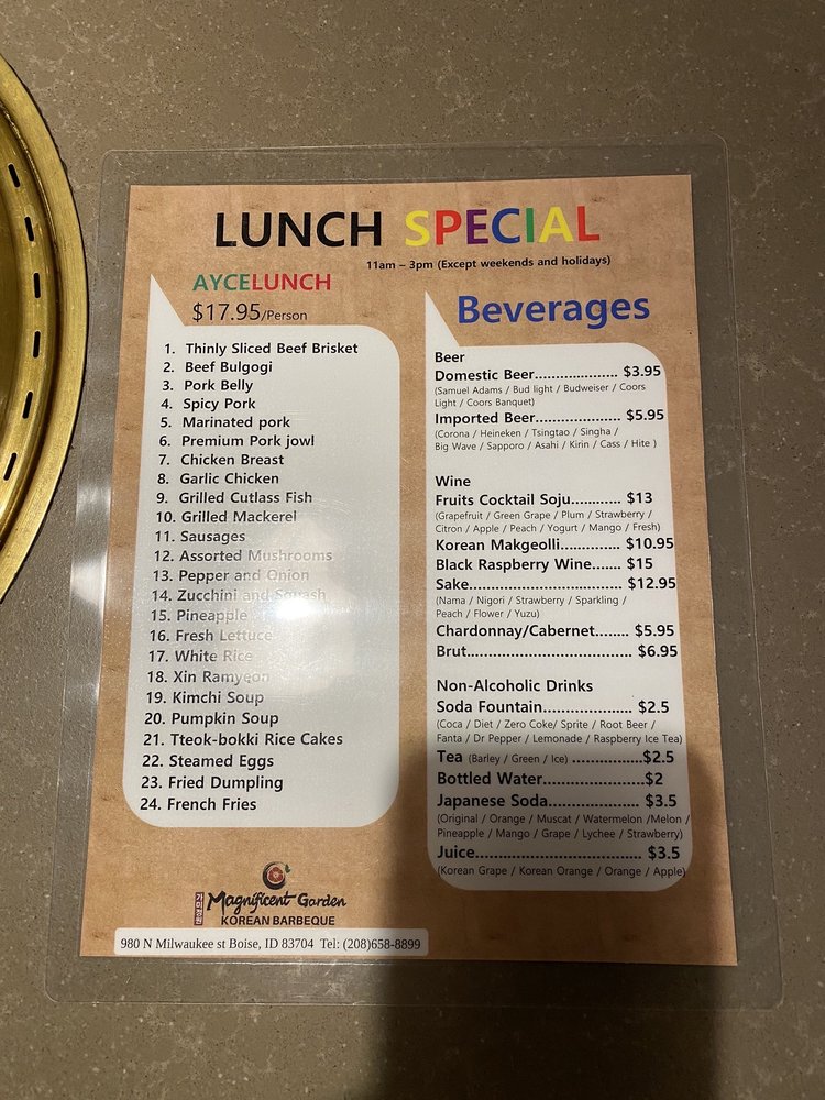 Welcome to Magnificent Garden, a delightful haven for Korean cuisine in Boise, ID. This trendy eatery offers a vibrant menu filled with authentic flavors that transport you straight to Korea. Guests rave about the kimchi jjigae and chap che noodles, showcasing the restaurant's commitment to traditional dishes.